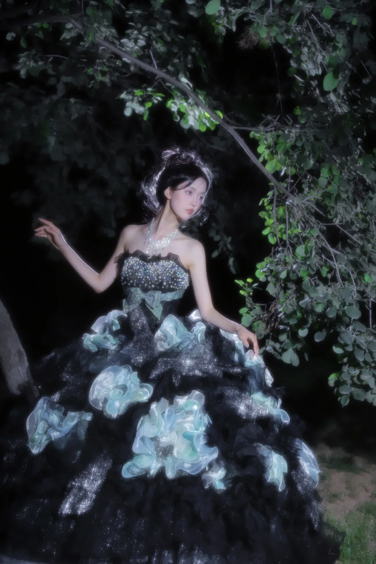 Light blue strapless fitted waist elegant ball gown with a full skirt, bridal dress R7249