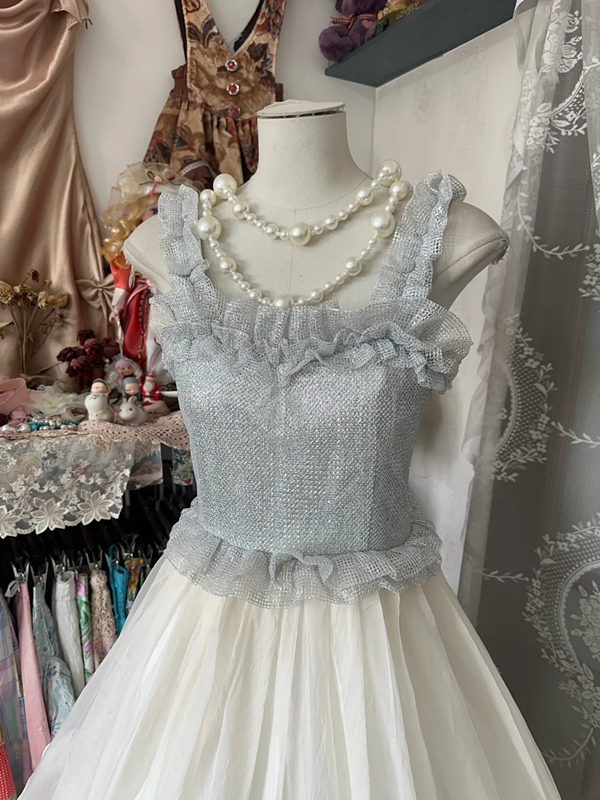 Light-colored sleeveless waist-length cake-cut puffy skirt long ball gown R6217