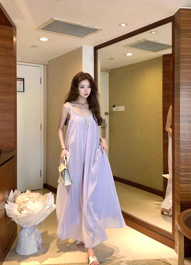 Long atmospheric diamond pure desire suspender dress summer French style loose skirt R4908
