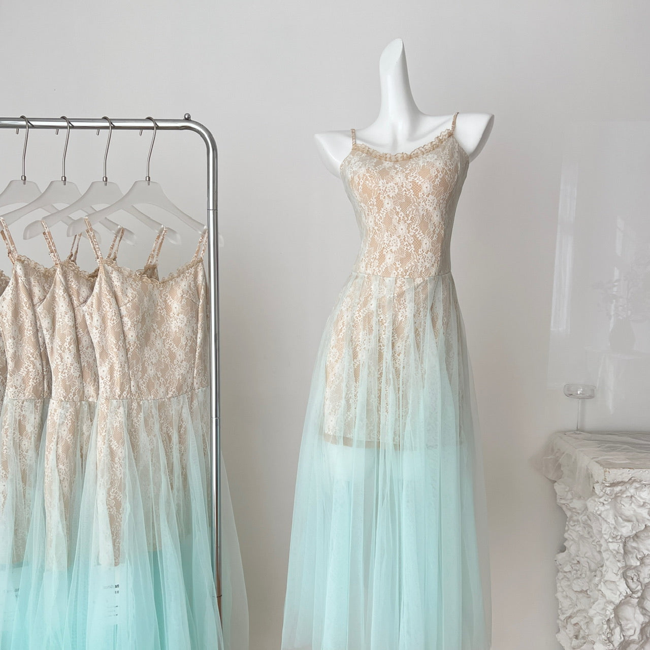 Mesh suspender dress 2025 new lace splicing long skirt high-end skirt R2169