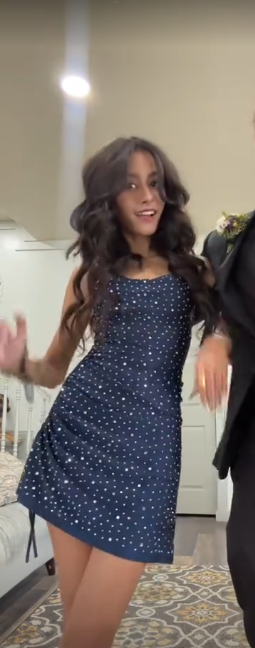 Navy blue suspender diamond waist slim A-line short skirt homecoming dress R5538
