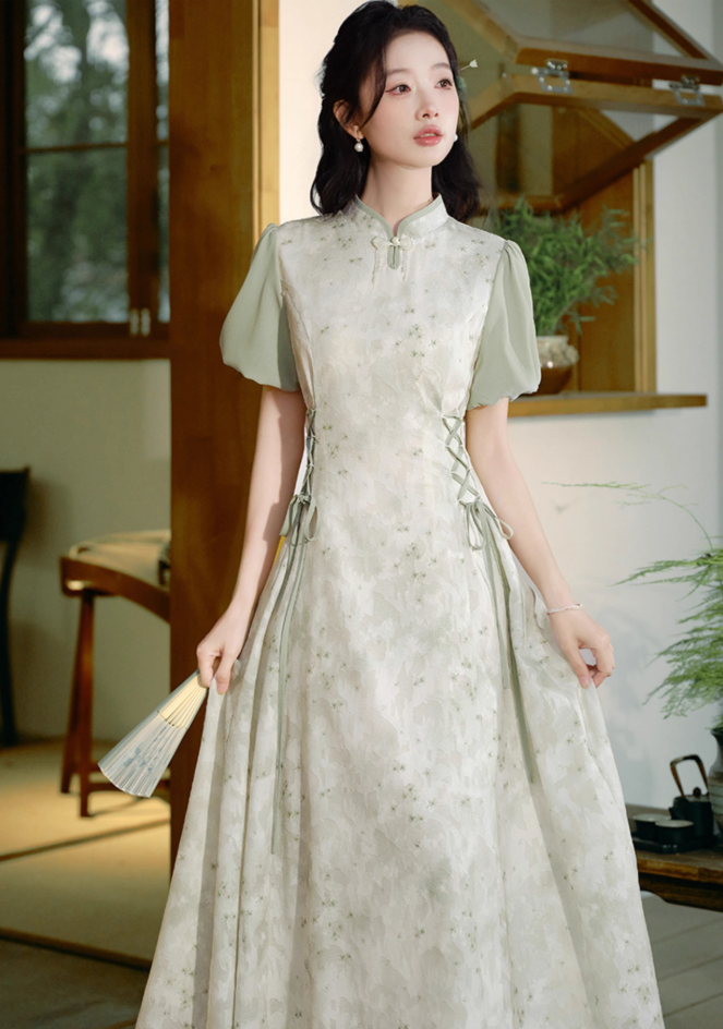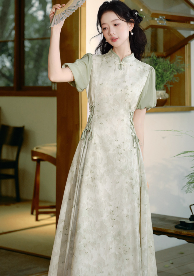 New Chinese style light national style improved cheongsam waist Zen dress R2362