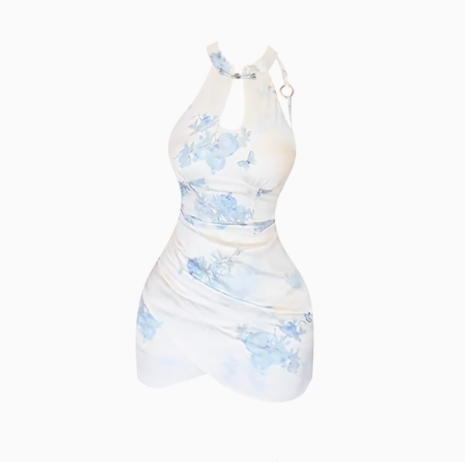 New Chinese style sleeveless halter neck cheongsam skirt 2025 backless waist hip short skirt R1220