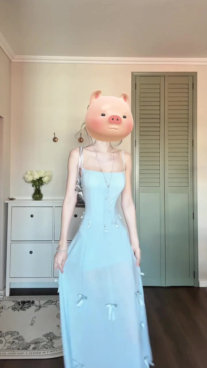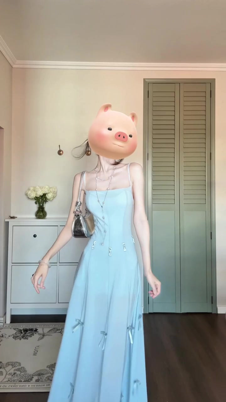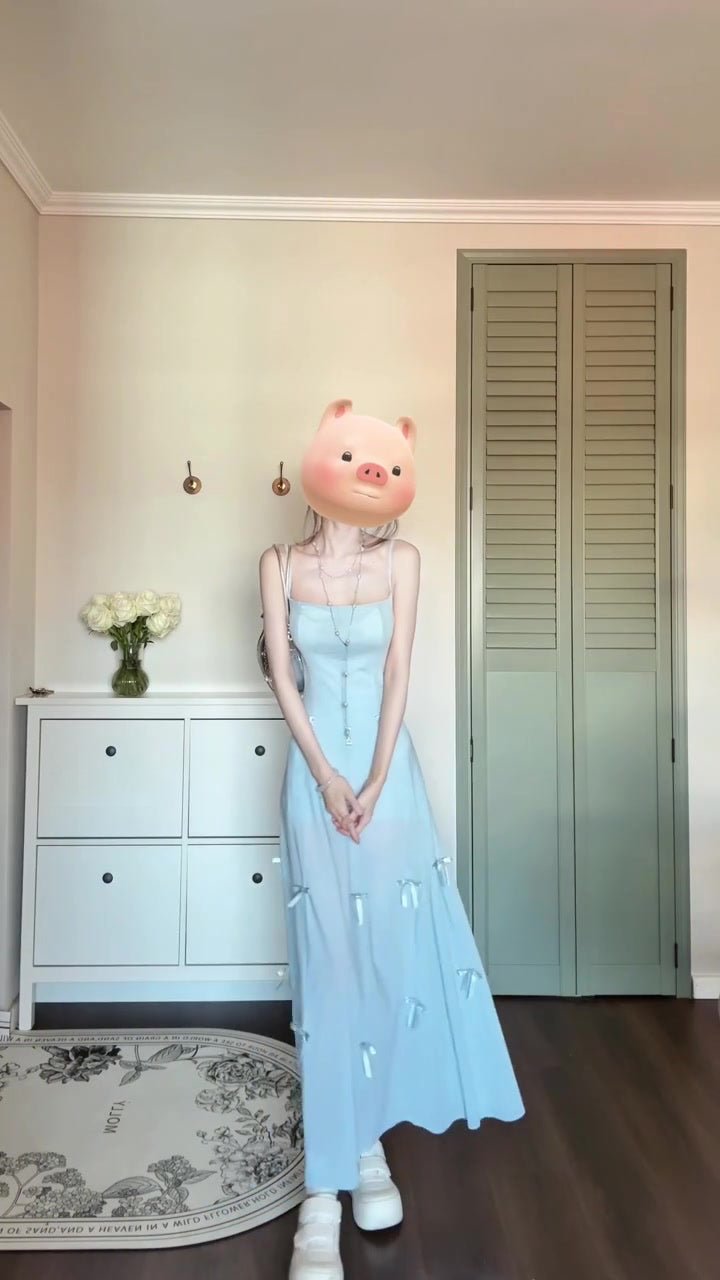 One dress for multiple wears, holiday style blue bow suspender dress, gentle temperament, beautiful long dress R0446