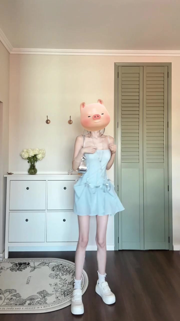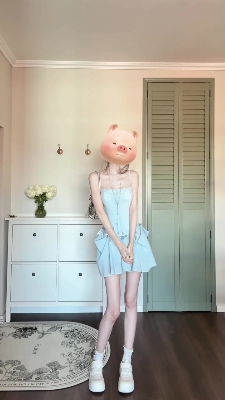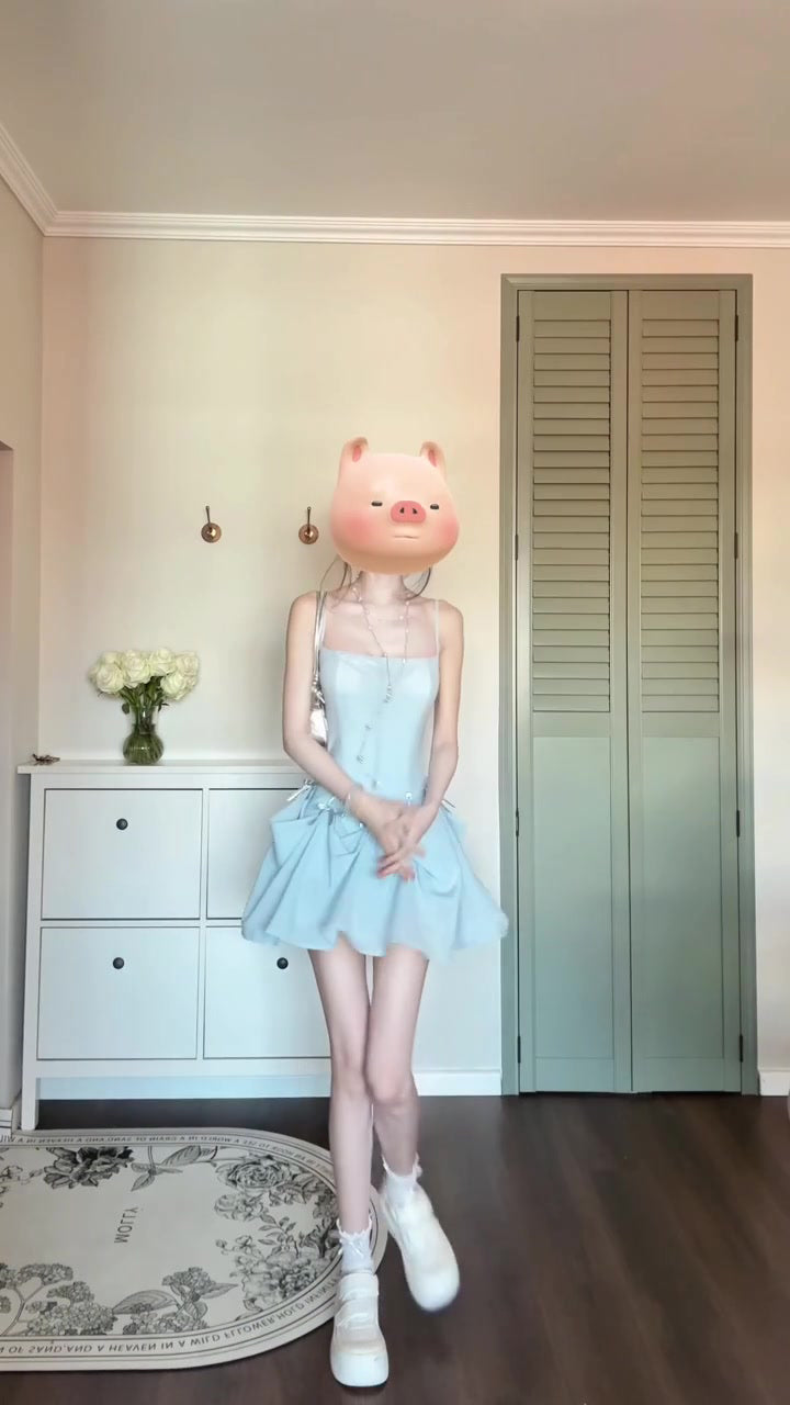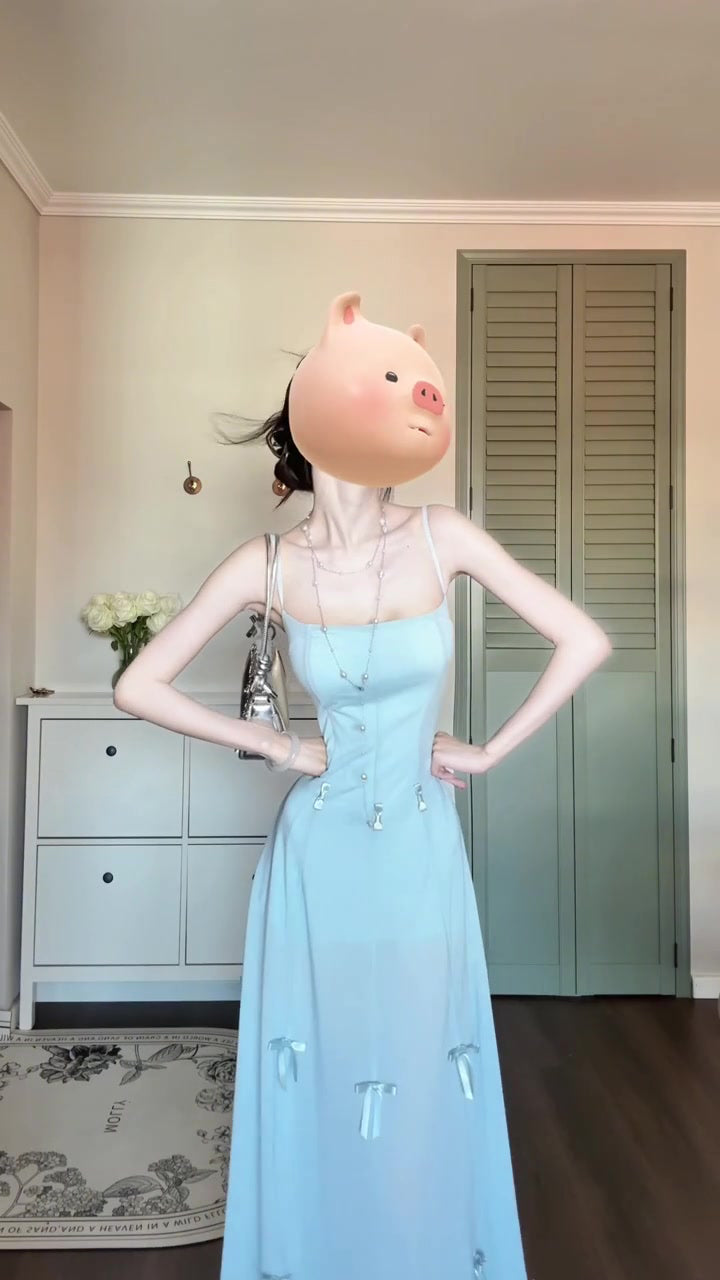 One dress for multiple wears, holiday style blue bow suspender dress, gentle temperament, beautiful long dress R0446