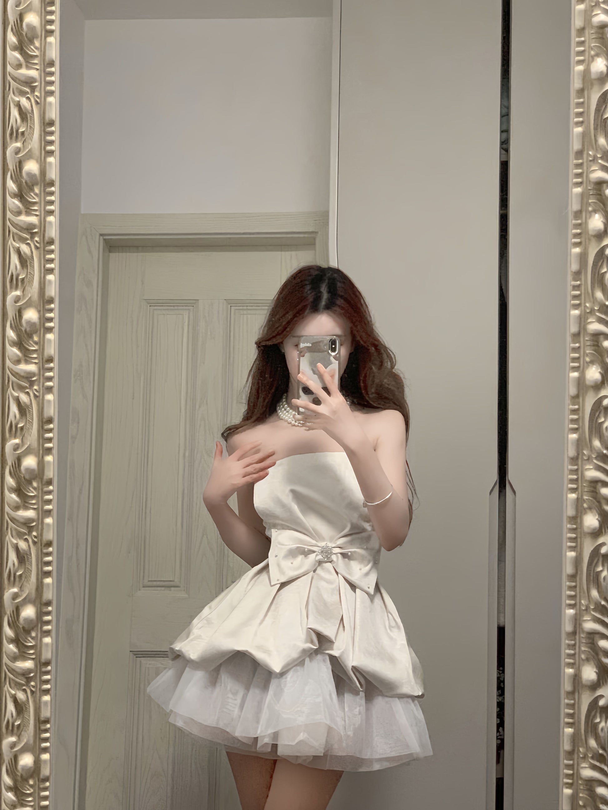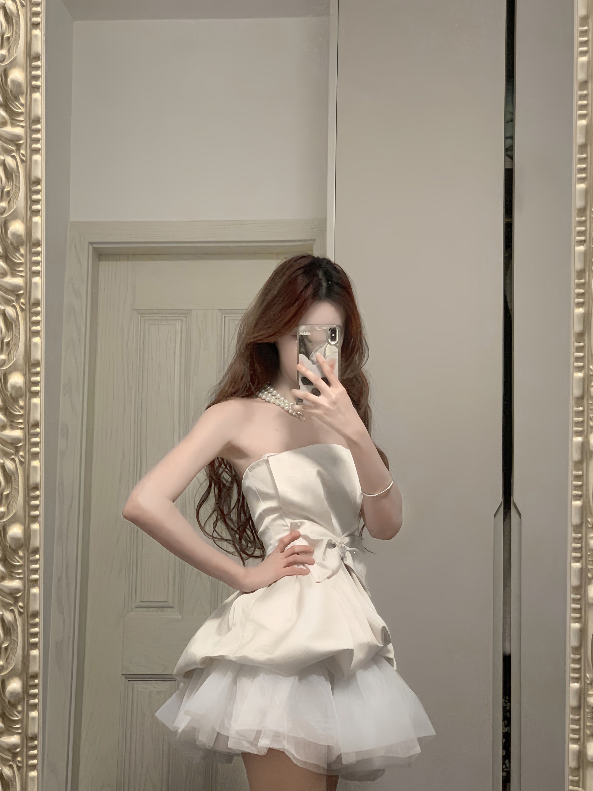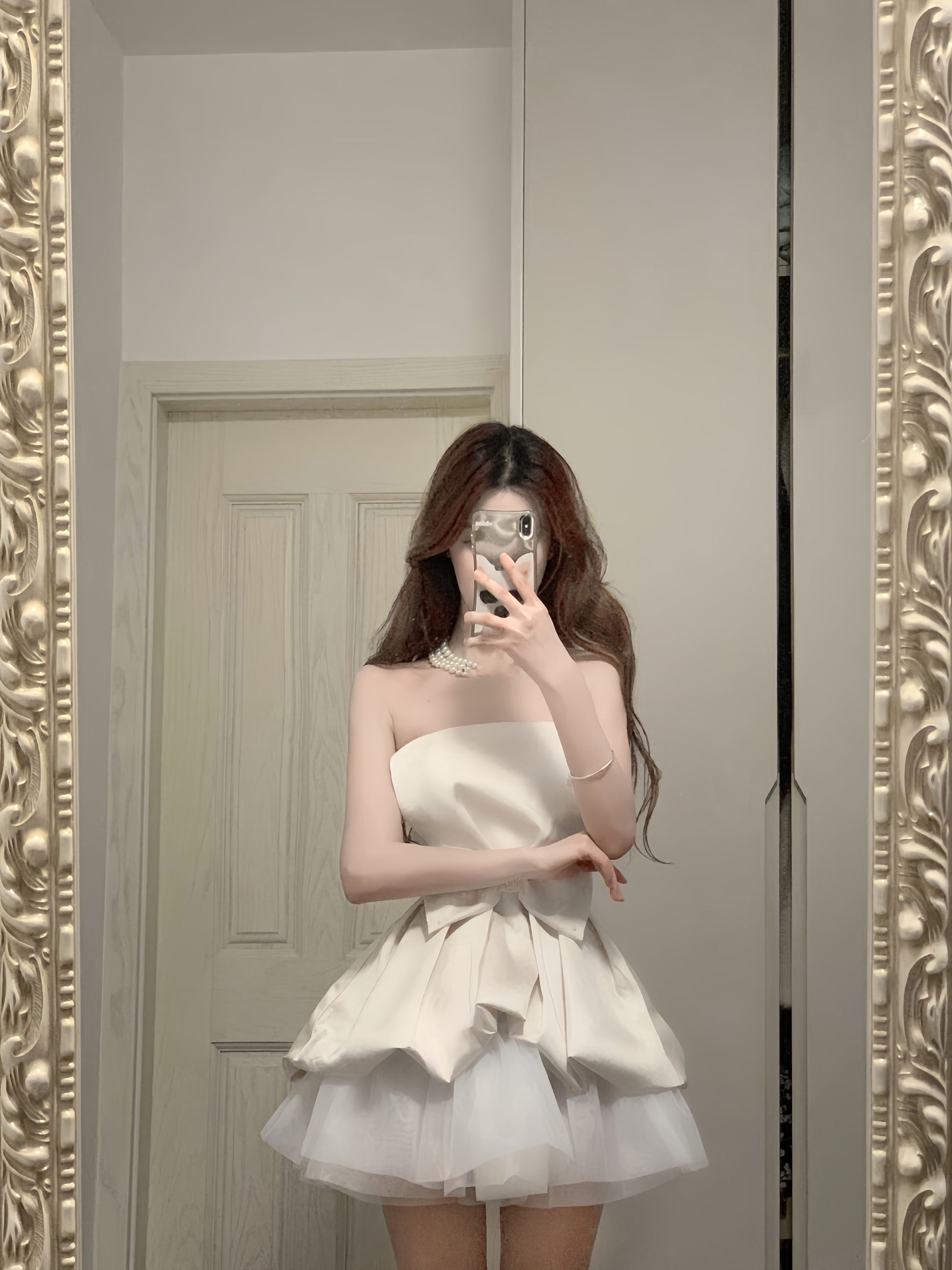 One-shoulder tube top dress gentle temperament waist dress tutu skirt R0527