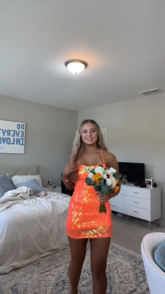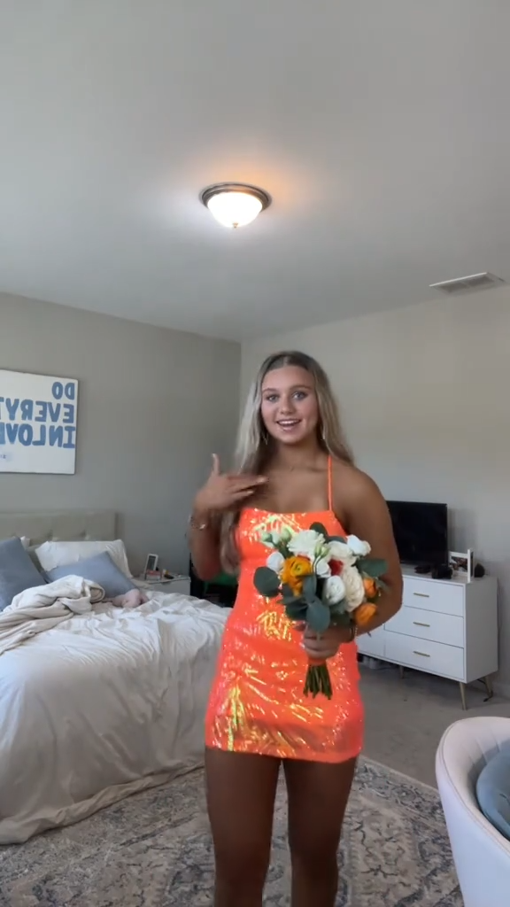 Orange halter neck sequined waist slim hip skirt homecoming dress R5610