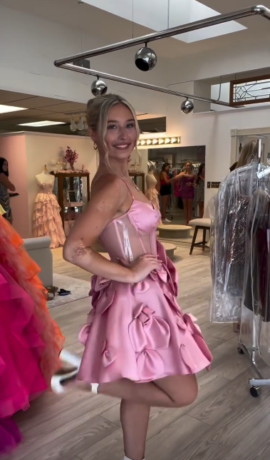 Pink suspender waist slim three-dimensional flower skirt homecoming dress R5468