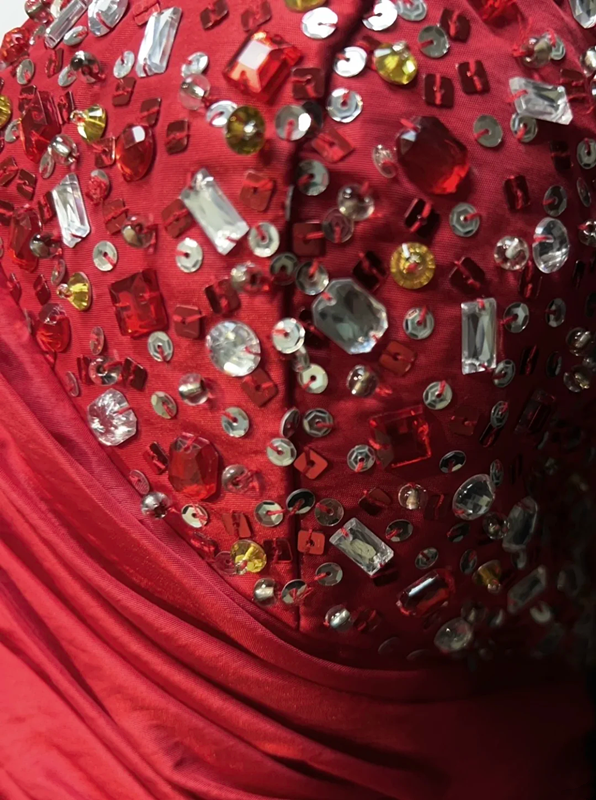 Red suspenders slim waist pleated hip skirt homecoming dress R5226