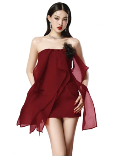 Red tube top slim waist hip skirt homecoming dress R4487