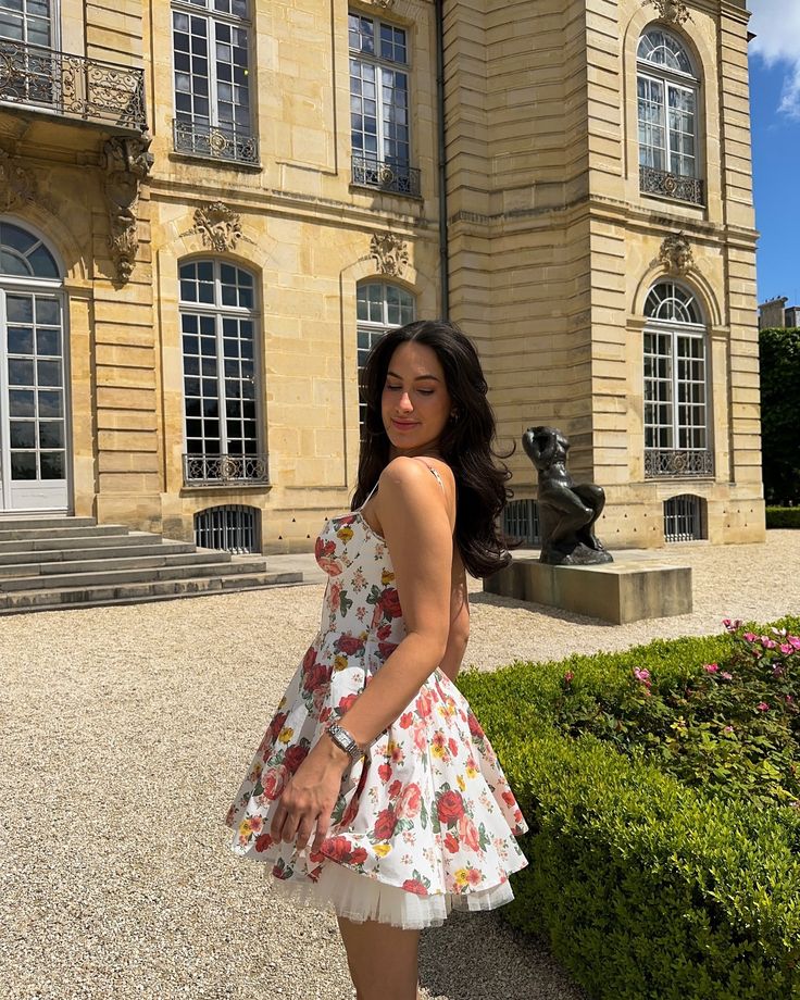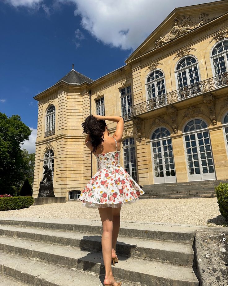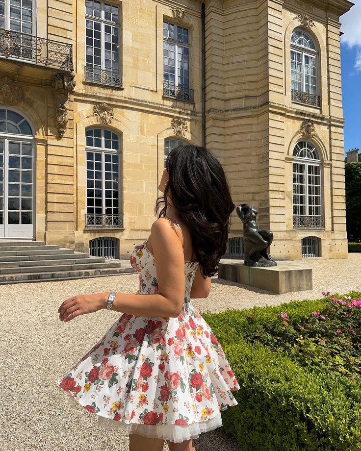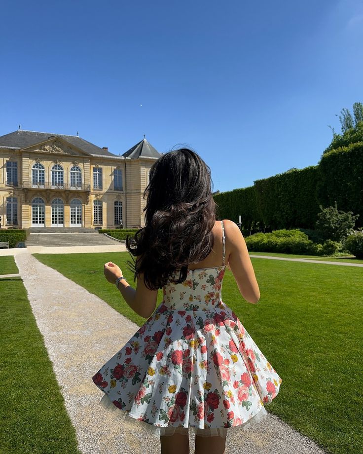 Retro floral suspenders waist slim fit tutu skirt homecoming dress R2722