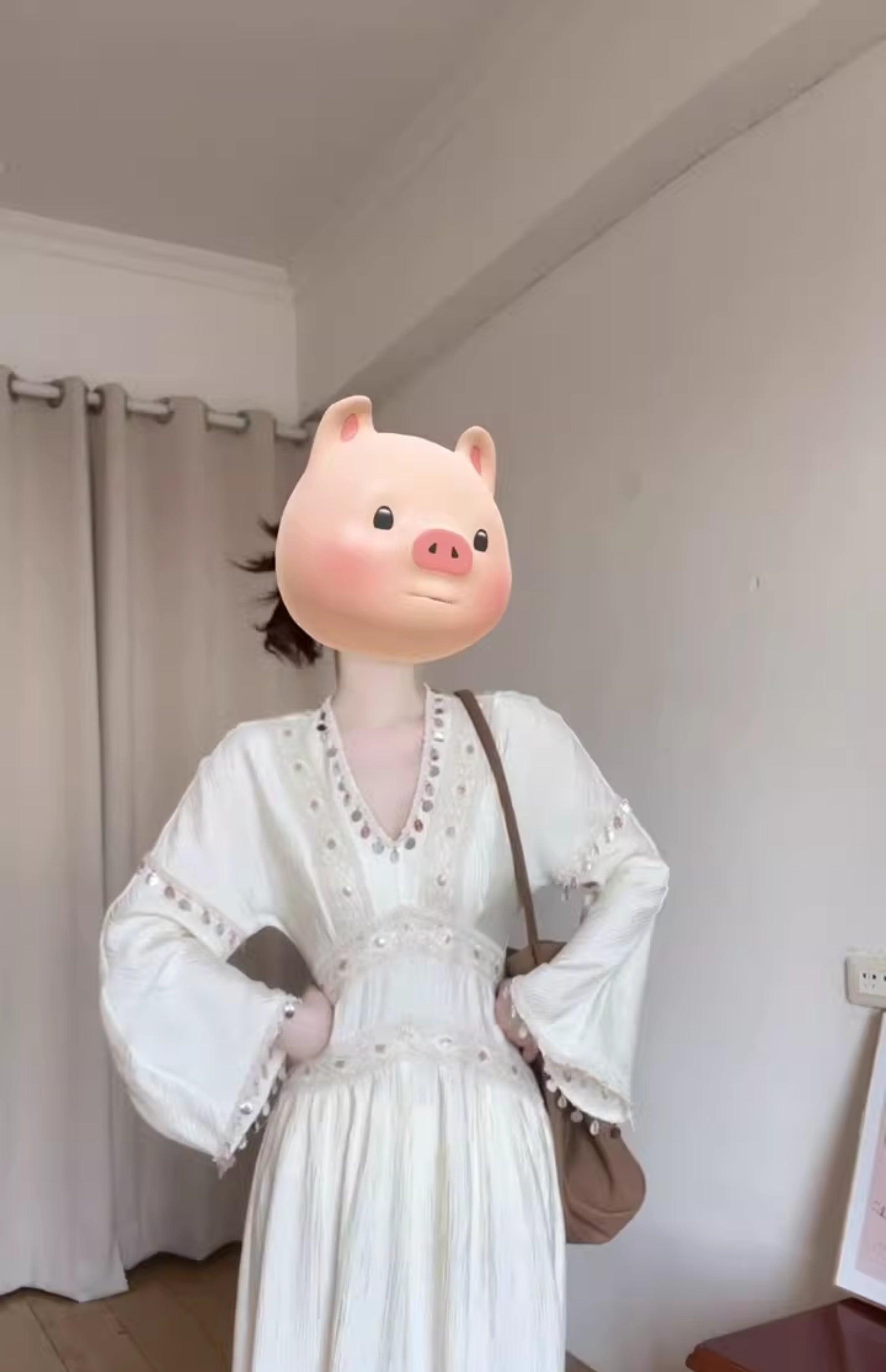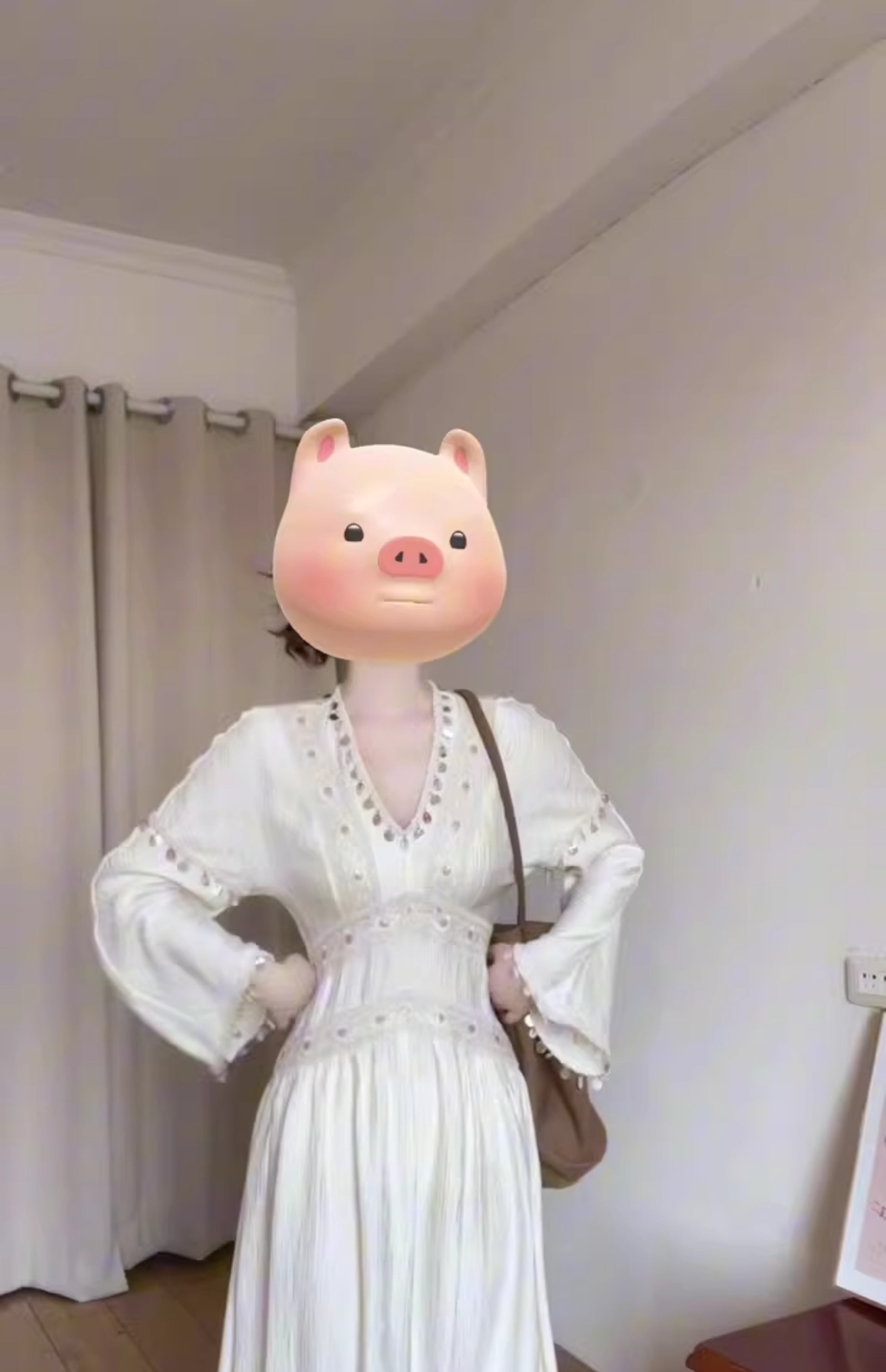 Seaside holiday style v-neck dress 2025 spring new beautiful unique waist temperament long dress R0440