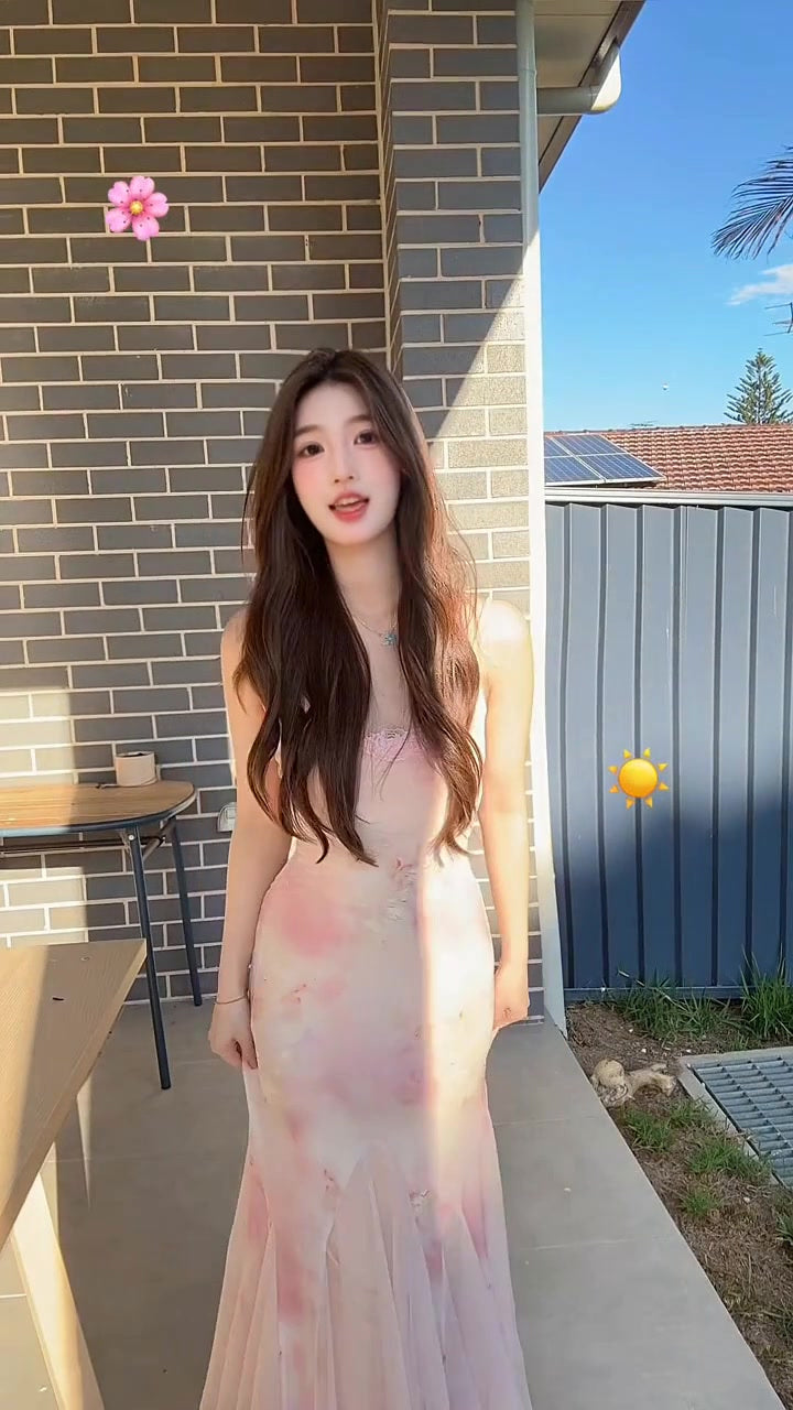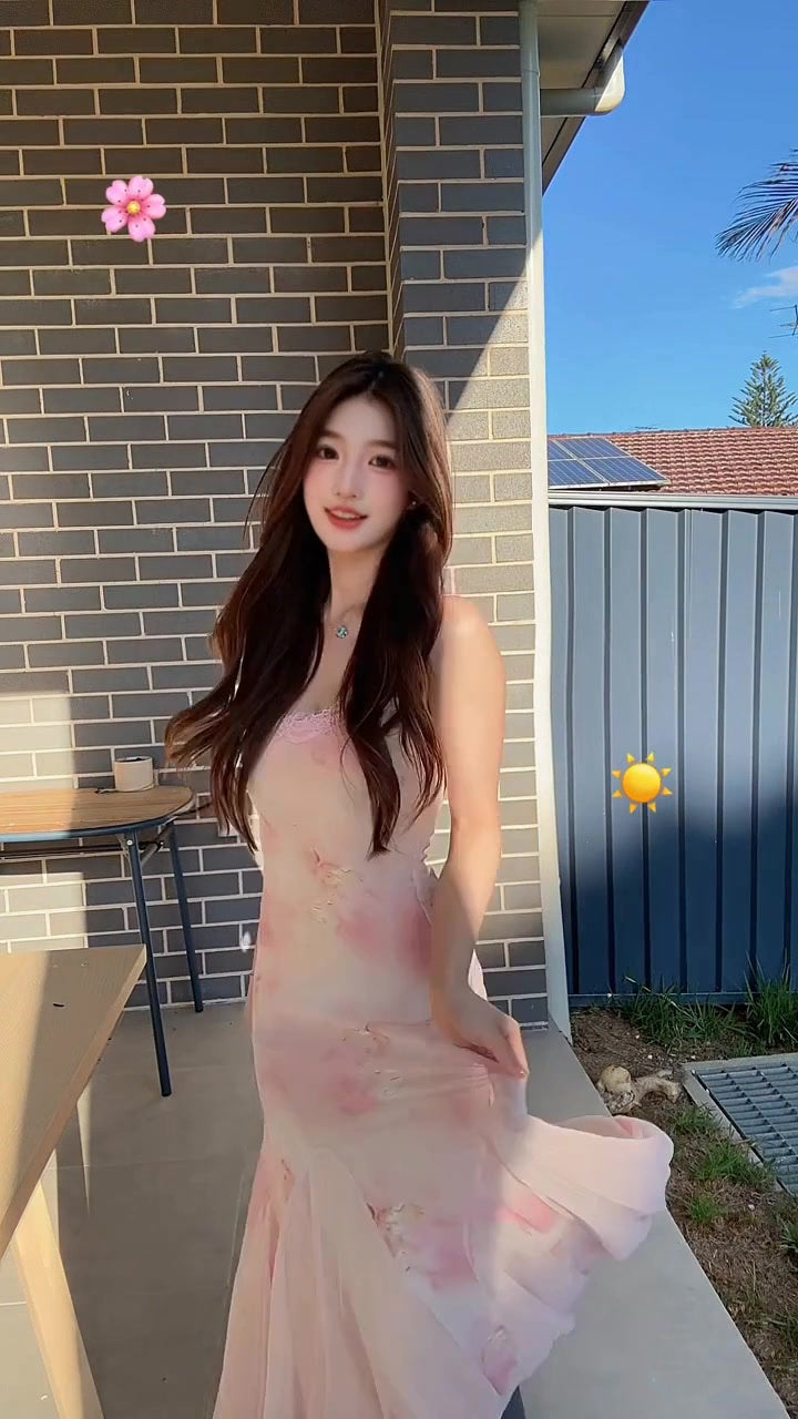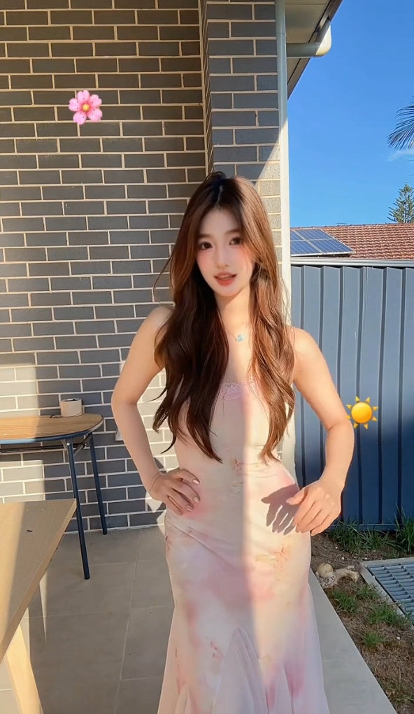 Sexy floral suspender dress mesh beautiful waist slim hip fishtail skirt R0513