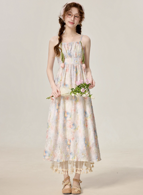 Summer temperament gentle style suspender dress pink girl floral dress R1889