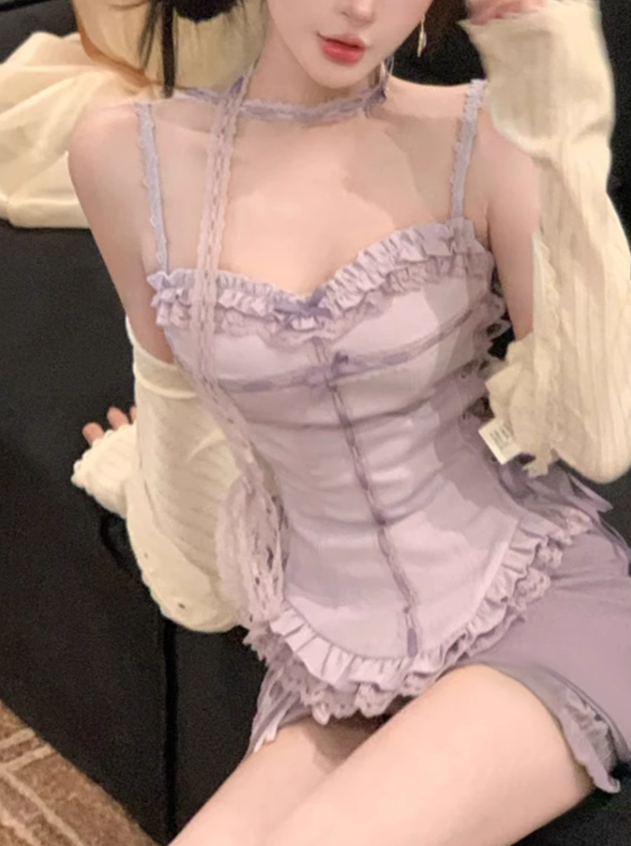 Sweet hot girl lace lace waist top 2025 bow skirt suit R1320
