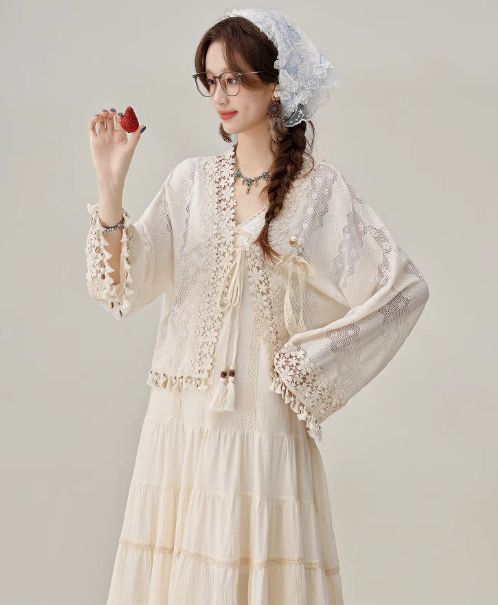 Temperament niche apricot sunscreen jacket with suspender skirt cardigan R1925