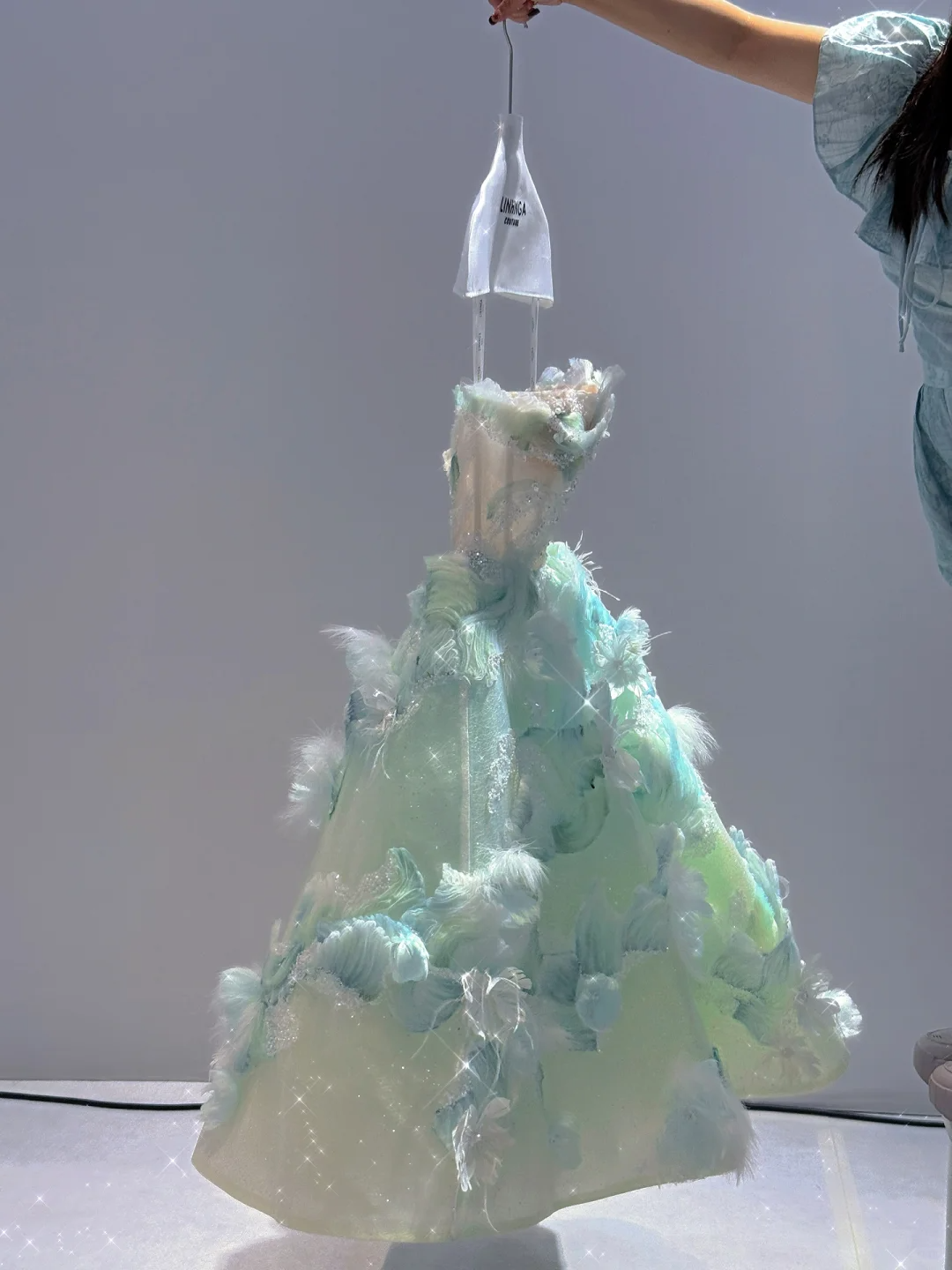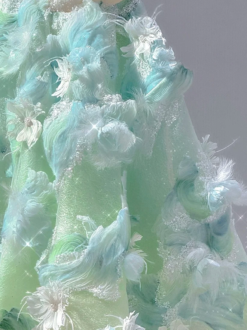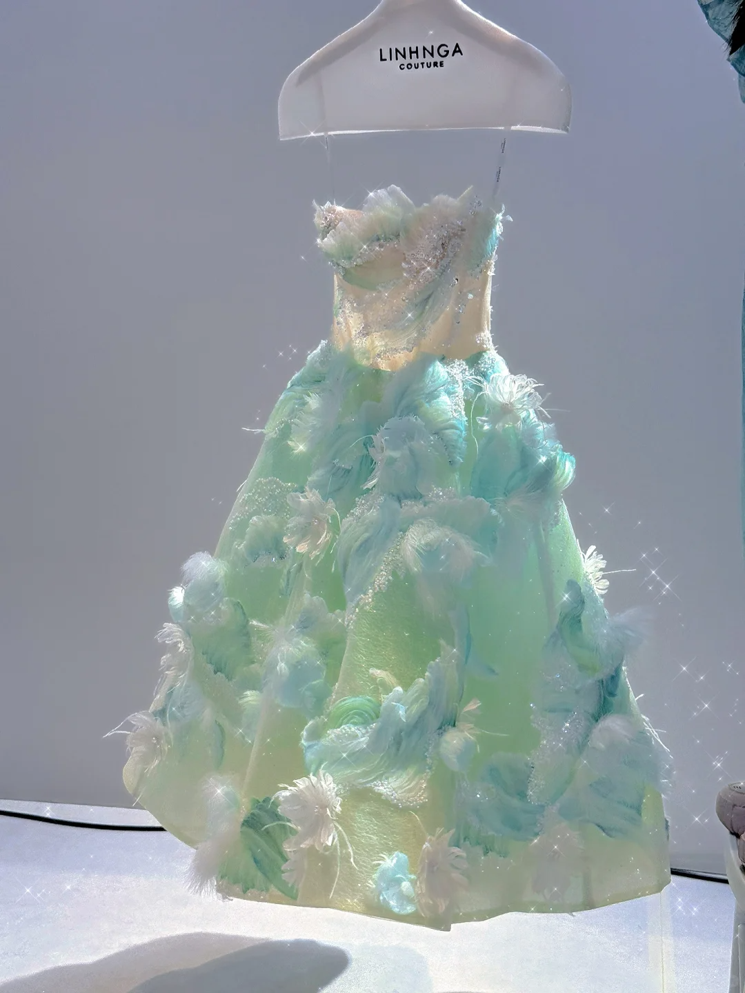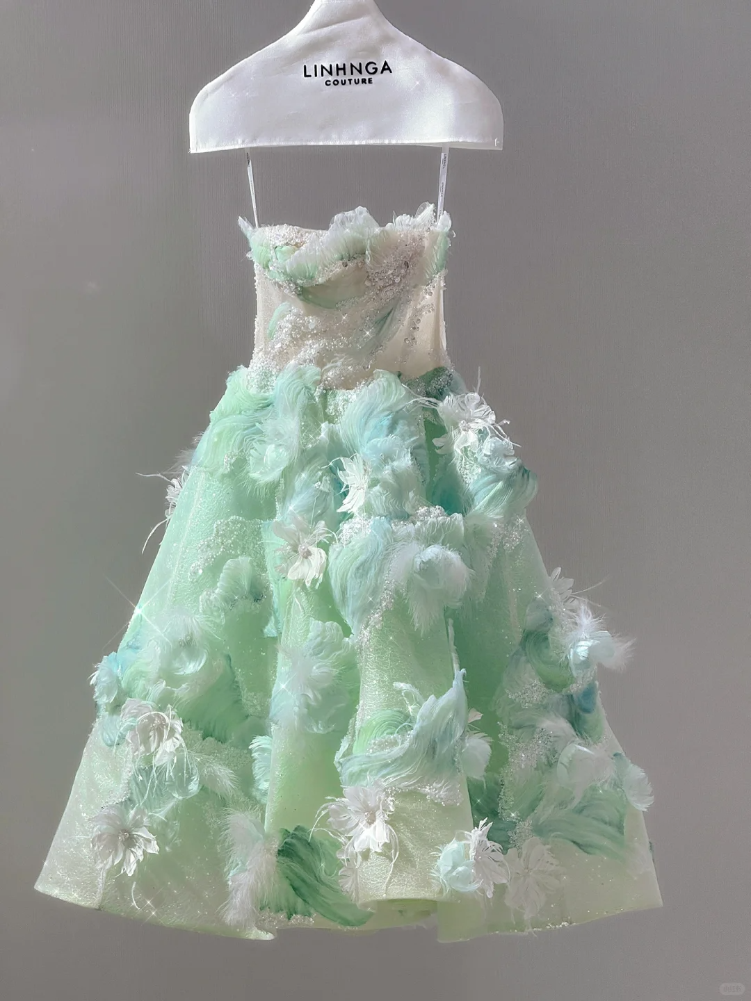 Turquoise suspender bright diamond design three-dimensional embellishment design fresh short skirt homecoming dress R4193