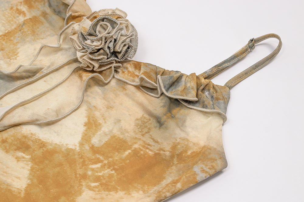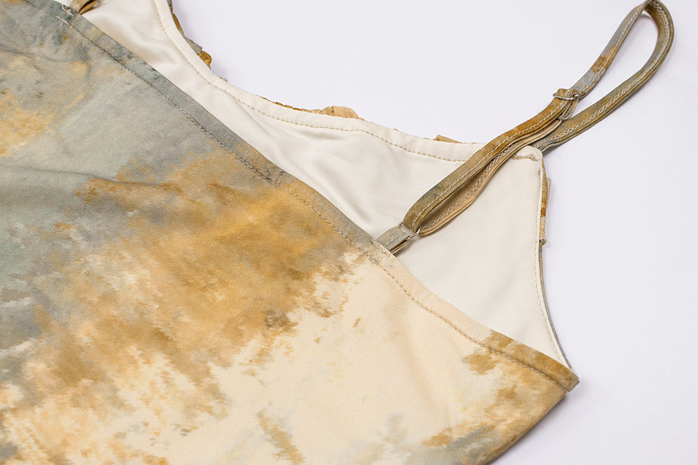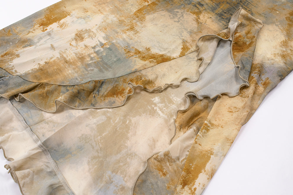 Wasteland style smudged suspender dress 2025 new holiday retro knitted irregular slit long skirt R0059