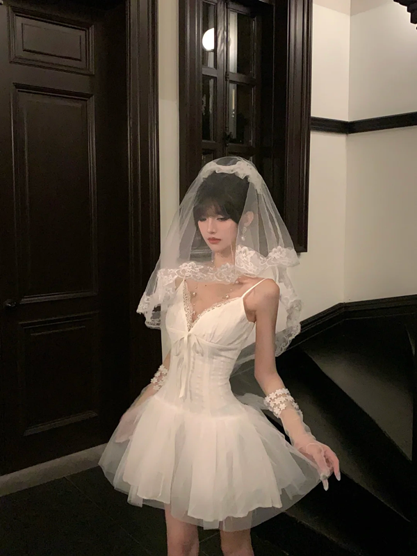 White halter sweetheart neckline waist slim fit tutu skirt homecoming dress R5059