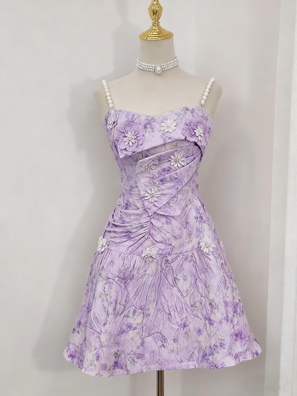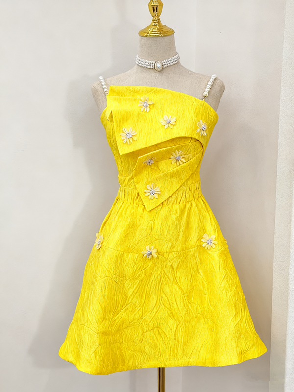 White pearl suspenders irregular neckline pattern design slim A-line homecoming dress R2548