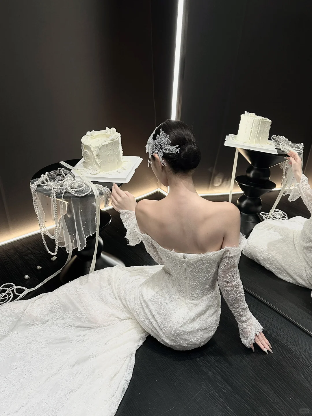 White strapless lace waist slim fishtail skirt floor-length wedding dress R6042