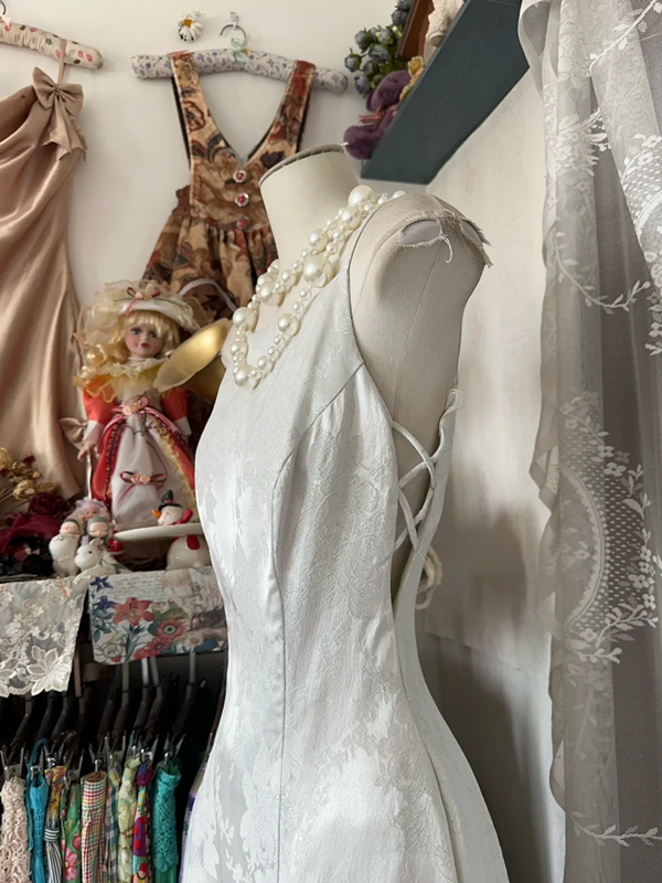 White suspender satin waist slim fit temperament A-line long skirt ball gown R6186