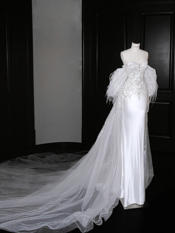 White tube top sequined waist slim sexy long skirt, prom dress R5665