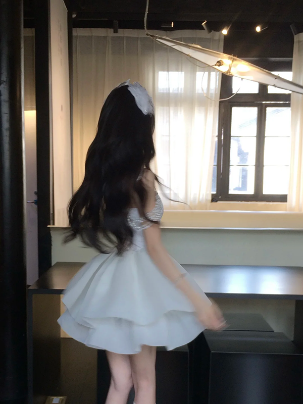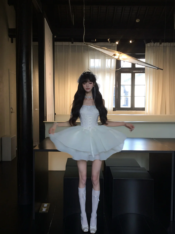 White tube top waist slim fit puffy princess skirt homecoming dress R5091