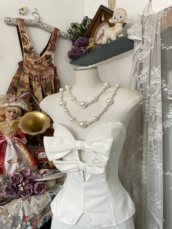 White tube top waisted top hip fishtail elegant long skirt ball gown R6134