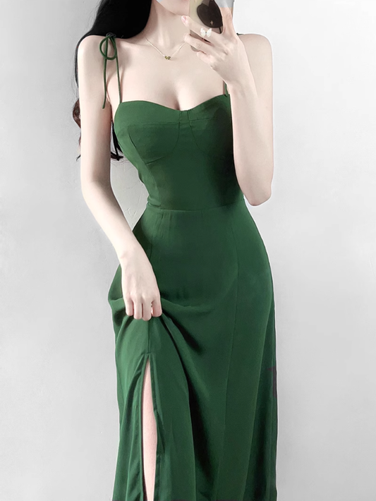 2025 Summer New Retro Temperament Sexy Green Holiday Seaside Suspender Dress R0952