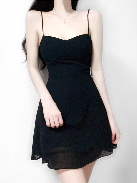 2025 summer new sexy petite pure black slim short suspender dress R0946