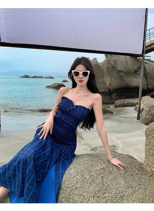 A Line Blue Sweetheart Long Prom Dresses,Strapless Evening Gown S3073