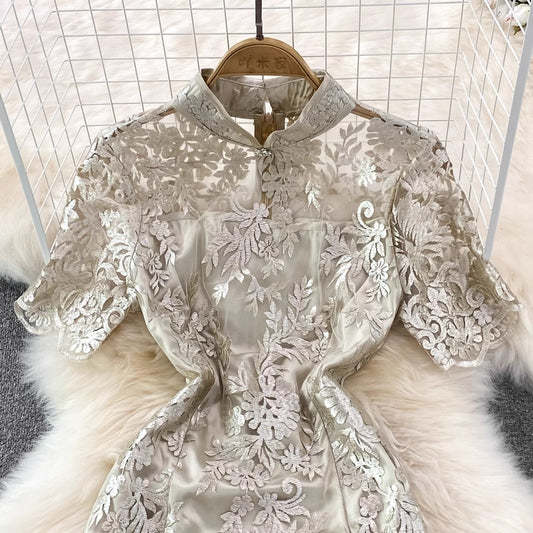 Chinese style cheongsam dress for women new retro slit long party dress S5643
