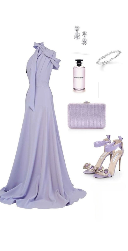 A Line One Shoulder Lilac Prom Dress Long Evening Party Dress S7022