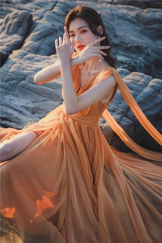 A Line Orange Long Stunning Evening Gown Party Prom Dress S7290