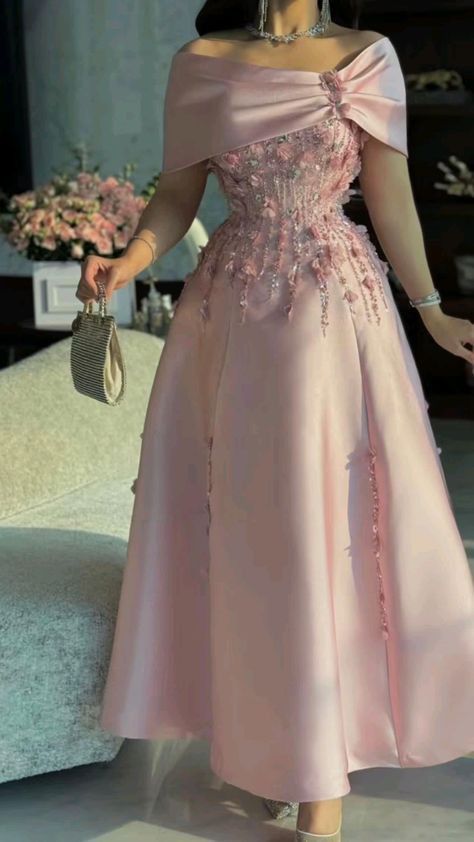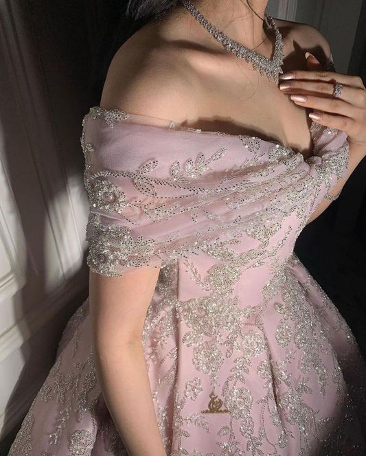 A Line Pink Elegant Evening Gowns Off Shoulder Long Prom Dress S7209