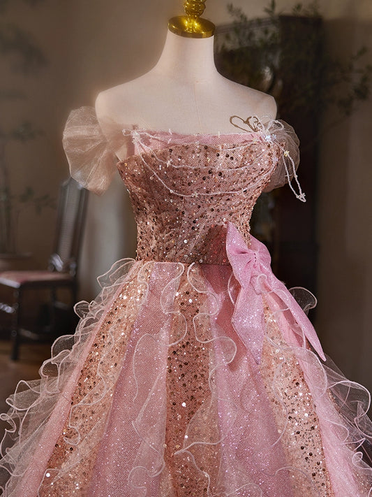 A Line Pink Off Shoulder Birthday Party Dresses Prom Dresses S7050