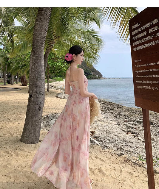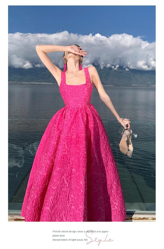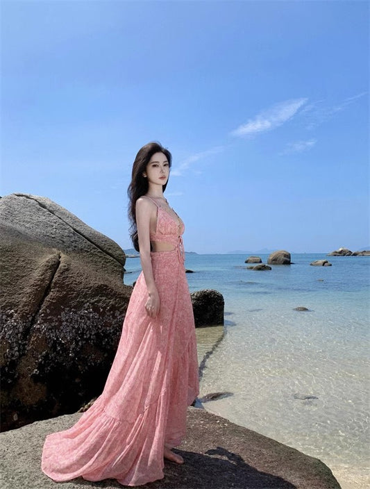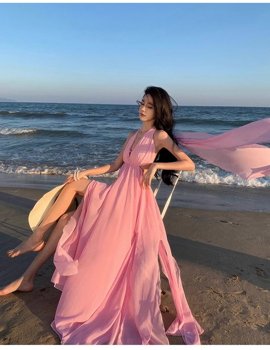 A Line Pink Long Dress Sexy Sleeveless Maxi Dresses Elegant Evening Dress S6810