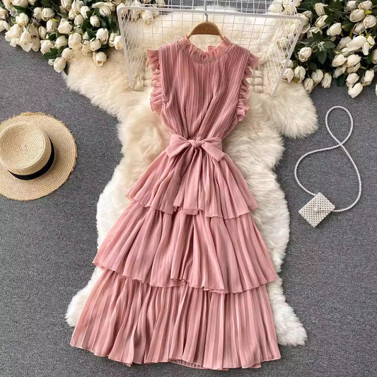 French dress for women pleats ruffled chiffon cake skirt S4667