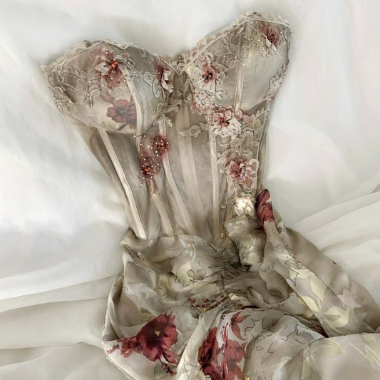 A Line Strapless Floral Print Long Prom Dress Evening Formal Dress S7089