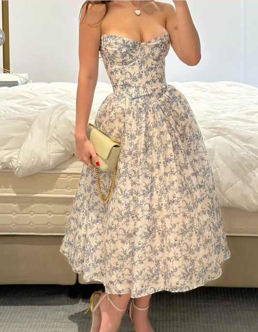 A Line Strapless Birthday Party Dress Midi Evening Dress S6779