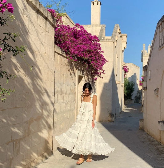 A line Straps Ruffles White Prom Party Dress S6741