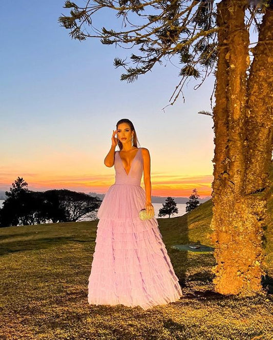 A Line Tulle Lavender Elegant Dresses For Women Sexy Porm Dress S4997