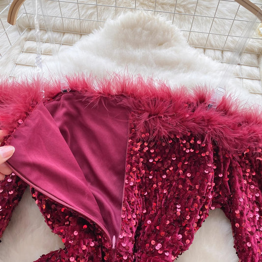 Hot Girl Style Women's Sequin Feather Tight Design Stunning Short Skirt S4663
