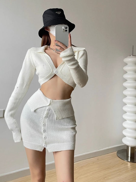 hot girls knitted short cardigan sweater skirt two-piece set S3395