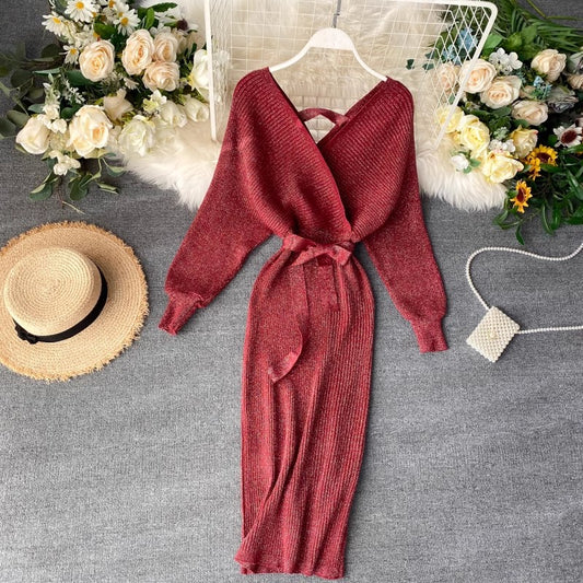 knitted dress for women fashionable V-neck sexy skirt S4556