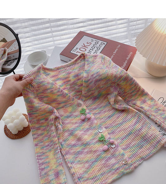 knitted top women's autumn new sweet and short sweater cardigan S3383