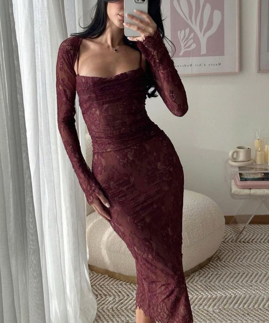 Lace Evening Dresses for Women Sexy Mermaid Long Sleeves Prom Gown S6968