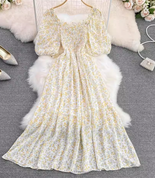 2025 new first love skirt square neck floral chiffon skirt tea break forest platycodon skirt a-line dress R0339
