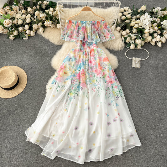 2025 New Flower Series Holiday Dress Ruffled One Shoulder Slim Long Fairy Dress R2321